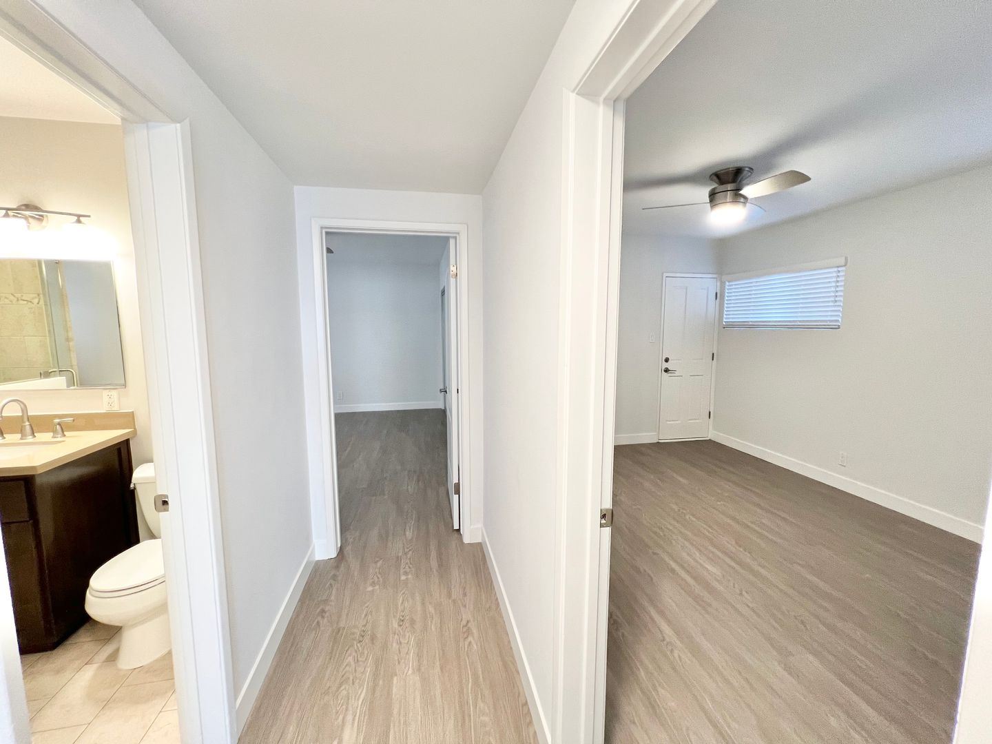 Inside, you’ll find brand-new plank flooring and fresh paint throughout, creating a clean, modern feel. The updated kitchen features stainless steel appliances, while both bedrooms include ceiling fans for added comfort. Enjoy the convenience of an in-unit washer and dryer and abundant natural light that fills every room.