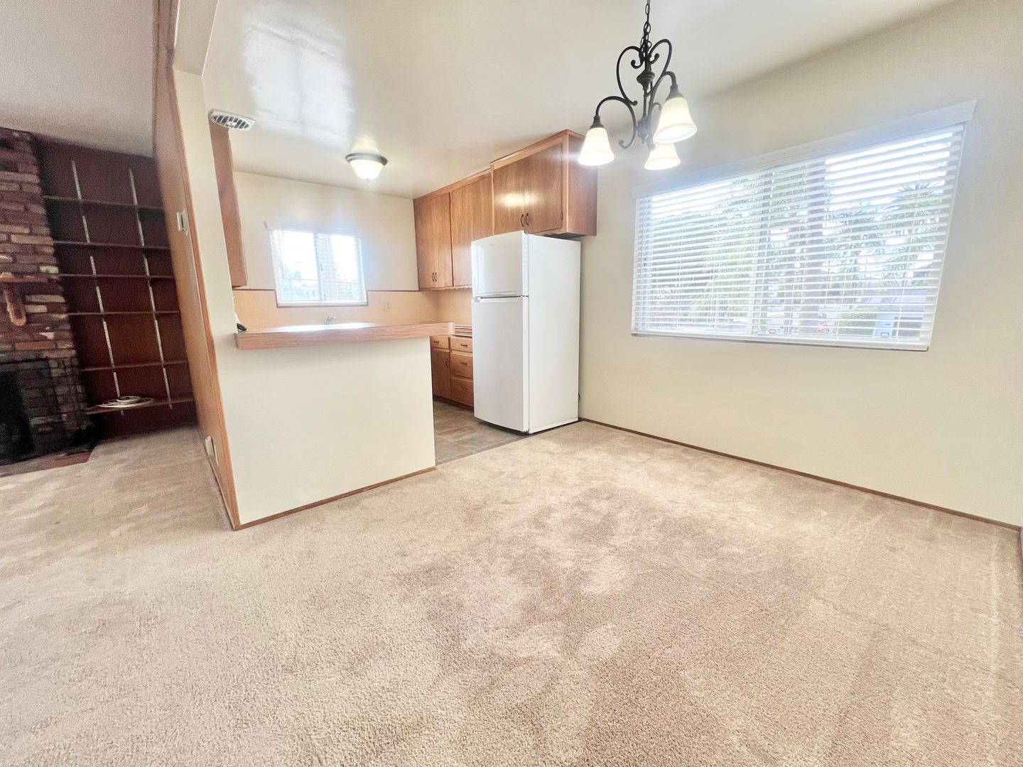 You'll love the abundant natural light that fills the space, highlighting charming touches like the decorative fireplace—a stylish focal point in the living room. Stay comfortable year-round with ceiling fans in both bedrooms and the dining area.